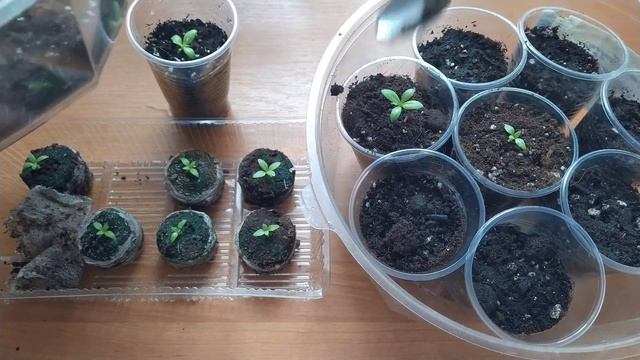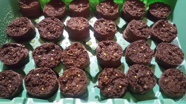 Звук в очень плохом качестве (совсем) Посев эустомы 12.12.2020г.,сеяла в грунт (Терра Вита) перемешала с вермикулитом,пролила почву вода+фитоспапин(цвет чая),семена не присыпала,капала со шприца водой+ЭПИН (на 1л. воды 2 капли эпина) и размяла глазурь у семян зубочисткой,стояли семена под освещение с 7:00 до 23:00 при температуре 23-25 градусов. На 8-мой день 20.12.2020г. появились первые всходы (взошло 8 семян в одном сорте и 9 в другом) Подкормила 08.01.2021 Кальциевой селитрой 1 раз (по инструкции) Подкормила 17.01.2021г. Крепыш 2,5мл. на 1л.воды и засыпала просеянным и прокаленным песком ножку,чтобы не подсыхала,держу сеянцы под пленкой пока ещё! Пикировала 25.01.2021г.,в почву добавила пролонгирующее удобрение Osmocote Bloom... Смотреть видео...